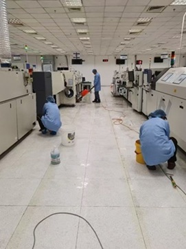 3100平方電子車間區(qū)域、辦公區(qū)域、倉庫區(qū)域防靜電地板清洗打蠟,有效防靜電處理,維護(hù)產(chǎn)品質(zhì)量。