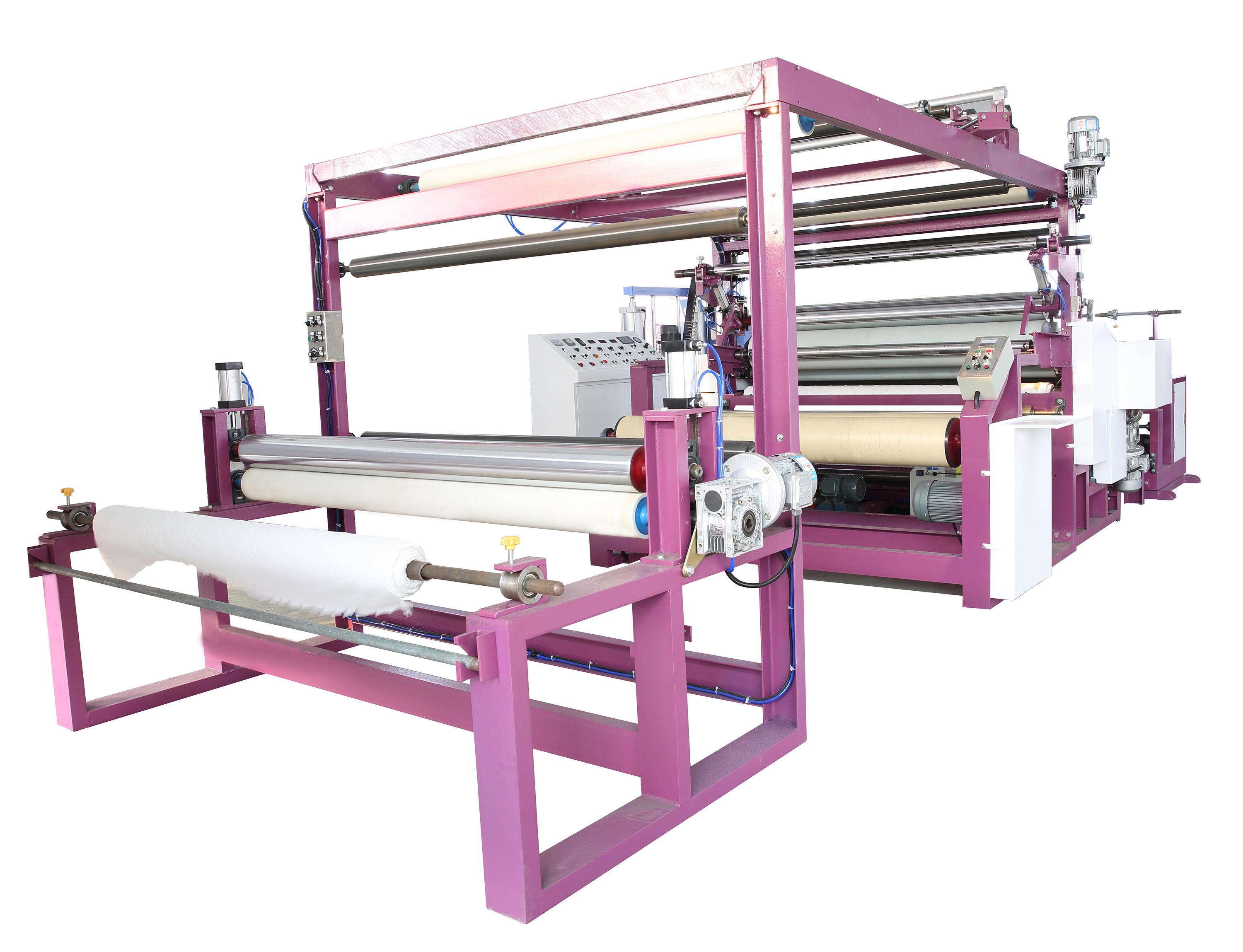 充氣材料復(fù)合設(shè)備是專門用于制造層壓結(jié)構(gòu)充氣產(chǎn)品的核心工業(yè)裝備。其核心功能在于將兩種或多種基礎(chǔ)材料(如涂層織物、薄膜、無紡布、增強(qiáng)網(wǎng)布等)通過涂布粘合劑(或熱熔膠)并精確復(fù)合在一起,最終形..