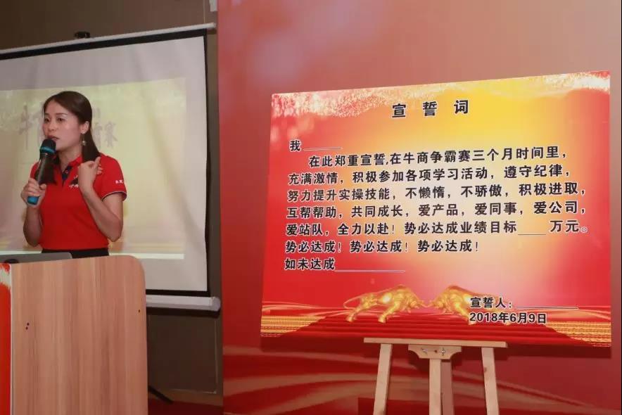 第一天的擴(kuò)展訓(xùn)練的圓滿結(jié)束后,次日,迎來(lái)了開(kāi)幕致詞、團(tuán)隊(duì)宣誓、宣揚(yáng)精神。“愛(ài)學(xué)習(xí),樂(lè)分享,講奉獻(xiàn),共成長(zhǎng)”是我們共同的口號(hào),也是我們共同的精神目標(biāo)。團(tuán)隊(duì)宣誓,不僅僅是對(duì)在場(chǎng)人員的承諾,也是對(duì)公司,對(duì)自身的承諾。團(tuán)隊(duì)大合照,映射出我們大家滿溢而出的笑容,對(duì)這次舉辦牛商爭(zhēng)霸賽得到的收獲感到滿意,會(huì)場(chǎng)弘揚(yáng)的團(tuán)隊(duì)精神感到振奮,未來(lái)奮斗的目標(biāo)感到激情。牛商爭(zhēng)霸賽開(kāi)啟儀式圓滿結(jié)束,為期3月學(xué)習(xí)旅程正式開(kāi)啟,祝愿53家公司都能夠在此次舉辦大會(huì)上得到滿意的答卷!